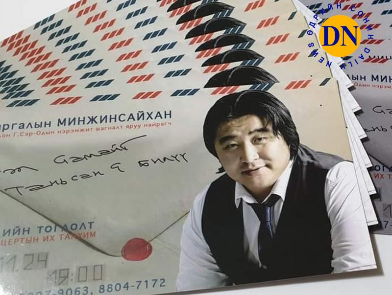Яруу найрагч Н.Минжинсайхан тун удахгүй анхны бие даасан “Сэтгэл чамайг таньсан ч билүү” уран бүтээлийн тоглолтоо хийх гэж байна. Тоглолтоо арваннэгдүгээр сарын 24-ний 19.00 цагаас “UB палас”-ын Концертын их танхимд хийх аж.