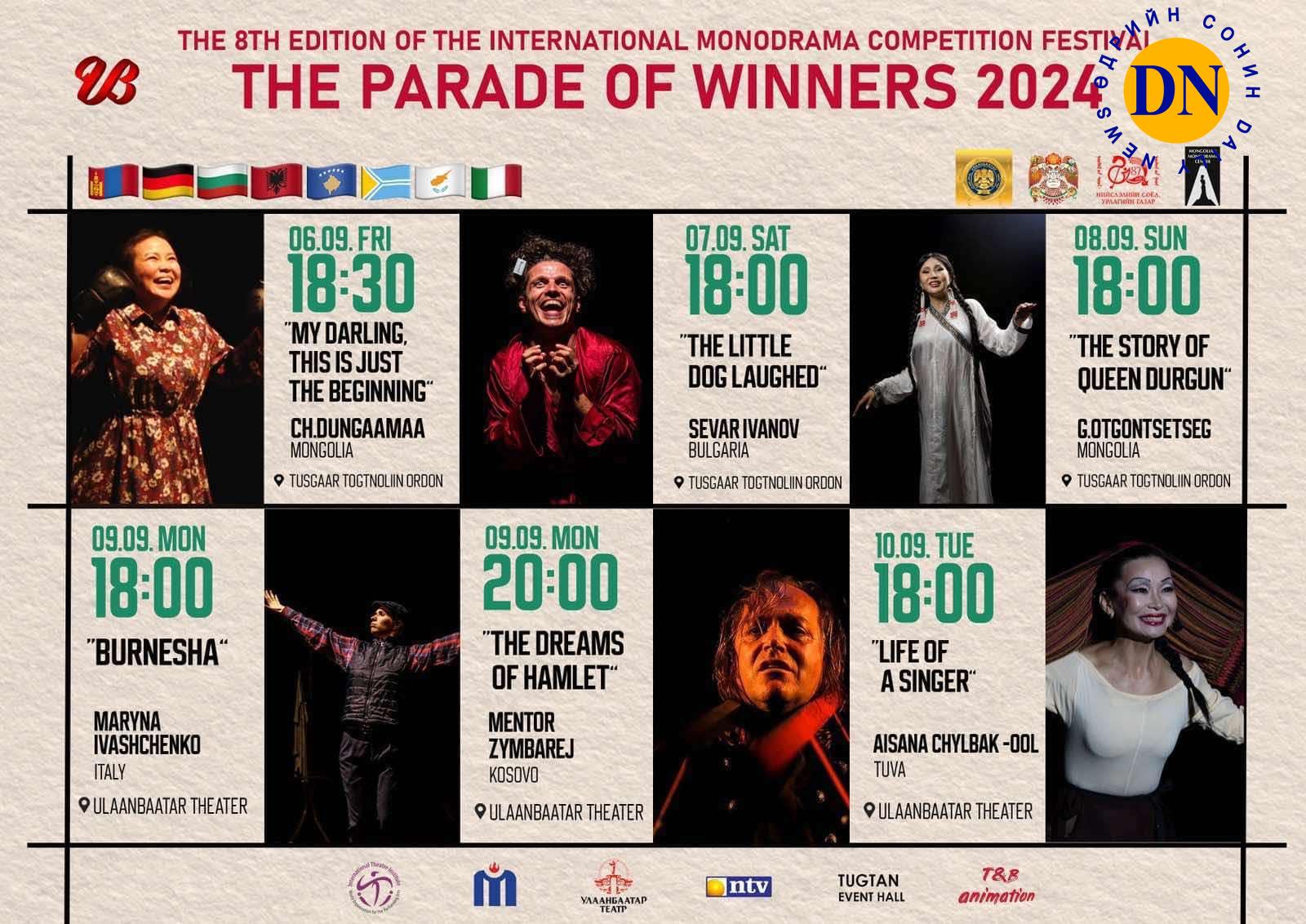 Тус фестивалийг нийслэлийн Соёл, урлагийн газар болон Монголын Моно жүжгийн төв хамтран зохион байгуулах бөгөөд энэ сарын 6-10-нд Тусгаар тогтнолын ордон, Улаанбаатар театрт тус тус болно. “Ялагчдын цуваа Улаанбаатар 2024” фестивальд Болгар, Албани, Итали, Косово, Тува, Кипр, Герман, Монгол Улсын уран бүтээлчид оролцох юм.