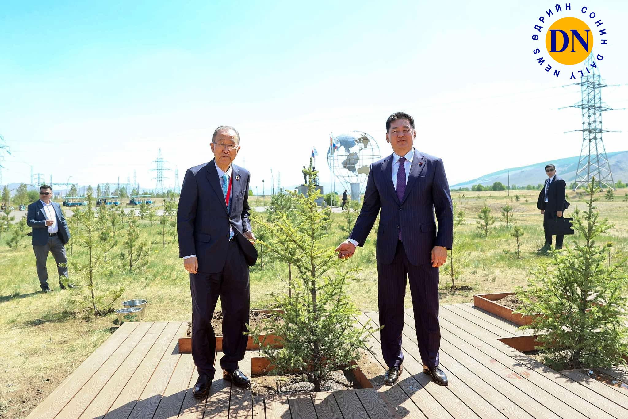 Монгол Улсын Ерөнхийлөгч Ухнаагийн Хүрэлсүх, НҮБ-ын найм дахь Ерөнхий нарийн бичгийн дарга Бан Ги Мүн нар “Тэрбум мод” үндэсний хөдөлгөөний хүрээнд өнөөдөр Үндэсний цэцэрлэгт хүрээлэнгийн Энхийг сахиулагчдын төгөлд дурсгалын мод тарилаа.